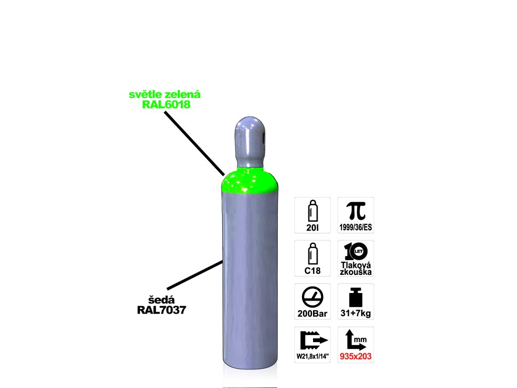 Láhev Směs C18 20 l, 200 bar, W21,8x1/14 prázdný obal
